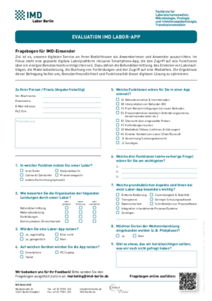 Ziel ist es, unseren digitalen Service an Ihren Bedürfnissen als Anwenderinnen und Anwender auszurichten. Im Fokus steht eine Laborplattform inklusive Smartphone-App, die den Zugriff auf alle Funktionen über ein einziges Benutzerkonto ermöglichen soll.