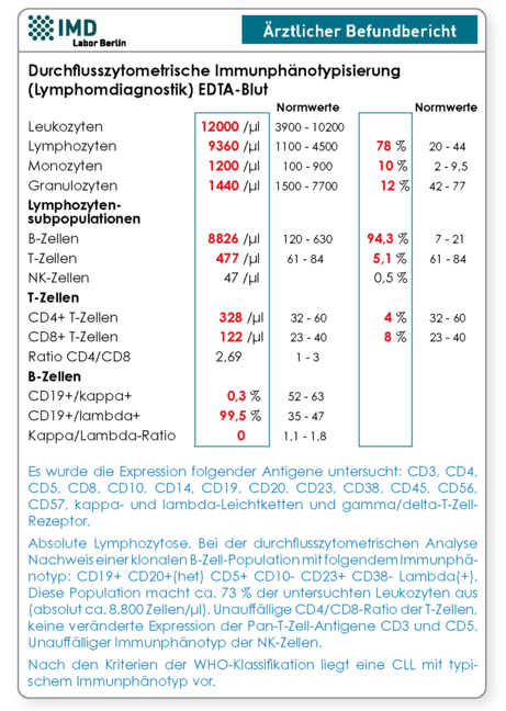 - anders nicht erklärbare Eosinophilie • Verlaufskontrolle bei monoklonaler B-Lymphozytose (MBL)