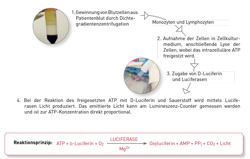 Ein verminderter ATP-Wert zeigt eine Stoffwechselstörung in den Mitochondrien an, weshalb das ATP-intrazellulär (gemessen in Leukozyten, die aus dem Blut des Patienten isoliert werden) ein wichtiger und direkter Marker für die sekundäre Mitochondriopathie ist. Für die Messung des ATP wird ausschließlich Heparinblut verwendet, da andere gängige Antikoagulantien wie Citrat oder EDTA durch ihre Kalziumblockade zahlreiche Zellstoffwechselprozesse „künstlich“ hemmen. Das Heparinblut darf zwischen Blutabnahme und Laboranalyse keinen signifikanten Temperaturschwankungen ausgesetzt sein und muss zügig (ca. 24 h), d. h. per Kurier ins Analyselabor gelangen.